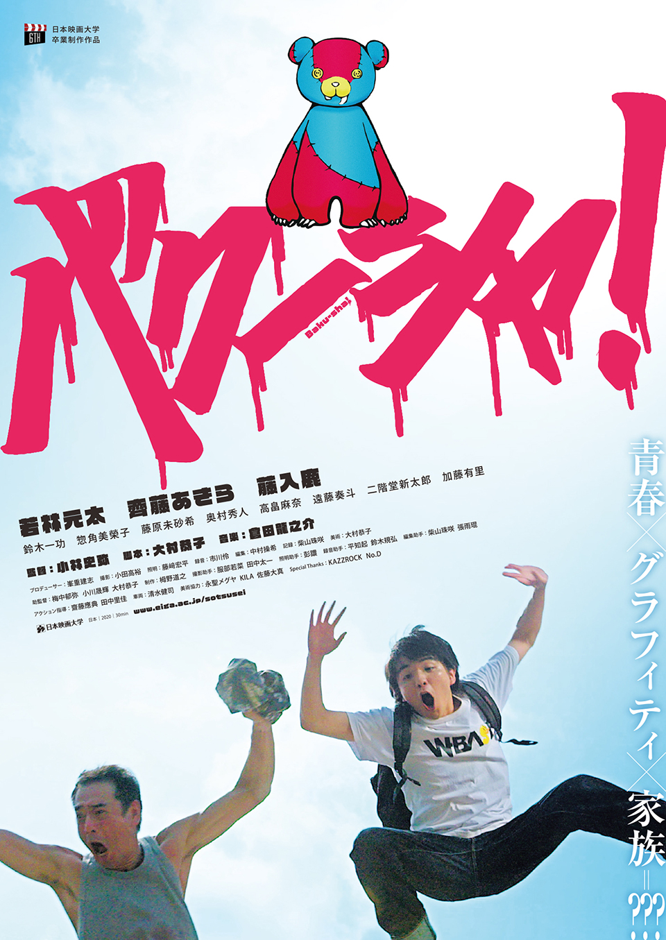 さえない漫画家の父と暮らす高校生の章司。彼の日課は、夜な夜な町に出かけては壁の落書き、グラフィティーアートをすることだった。描くのはいつも青いクマ、その名も「バクーシャ」。それは、幼いころ章司の前から姿を消した母が教えてくれた、2人だけの秘密の名前だった。ある日、章司は落書きの上に誰かが書き加えた文字を見つける。それはバクーシャ、母との思い出の言葉。母が近くにいるかもしれない。章司はさがしはじめるが……。